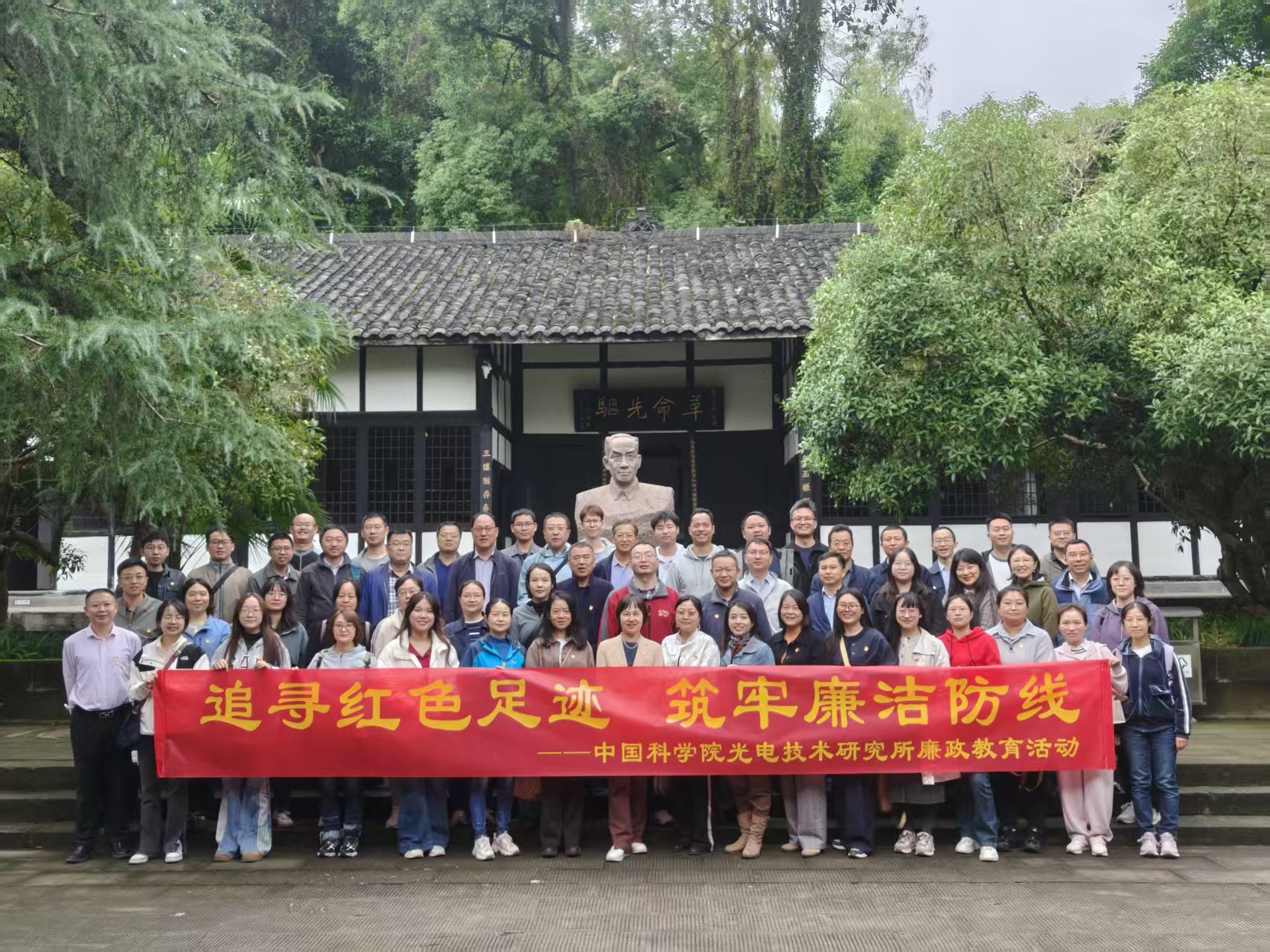 烟雨蒙蒙,荣县双石镇的青石板路,走进吴玉章故里,雨滴润湿了青瓦檐角。在“追寻红色足迹,筑牢廉洁防线”主题活动的指引下,我们循着吴玉章先生“一辈子做好事”的人生轨迹,在湿润的空气里与革命先辈对话,于文物史料中筑牢信仰根基,完成了一场深刻的心灵洗礼。