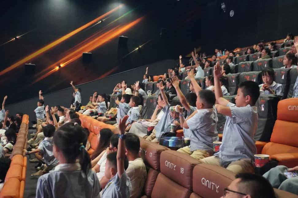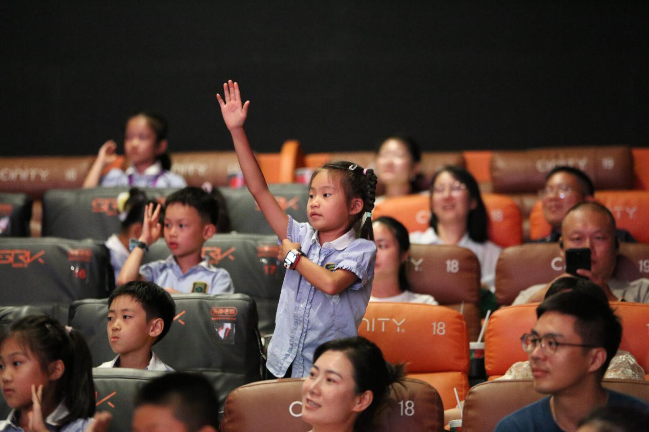 陈勇老师设计的“空间站是什么?”“宇航员是怎么上去的?”“宇航员怎么洗澡和吃饭?”等互动问题,将天宫课堂实验等知识点转化为趣味谜题,孩子们高举小手争相抢答,现场俨然成为欢乐的科学擂台。讲座结束后,同学们还观看了中国首部太空实拍电影《窗外是蓝星》,深化认知体验,收获满满。