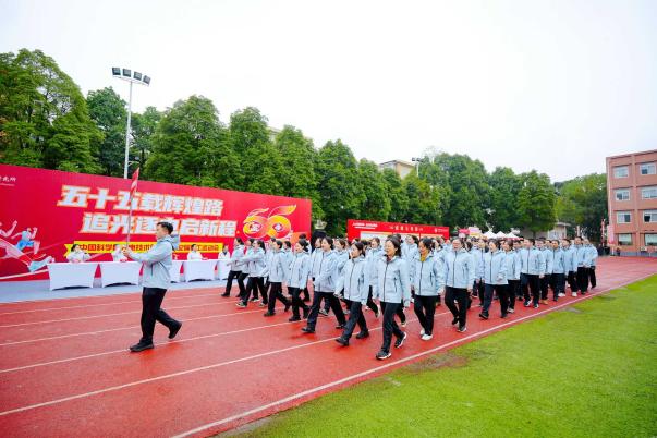 伴随《运动员进行曲》的嘹亮旋律,运动会拉开序幕。由55名研究生组成的红旗方阵率先登场,他们青春涌动、精神抖擞,呈现出新时代年轻人的朝气与活力。随后,科研代表队、机关代表队和公司代表队喊着响亮整齐的口号,步伐坚定地走向运动场,他们热情洋溢、斗志昂扬,展示出光电人团结协作、奋勇争先的精神风貌。