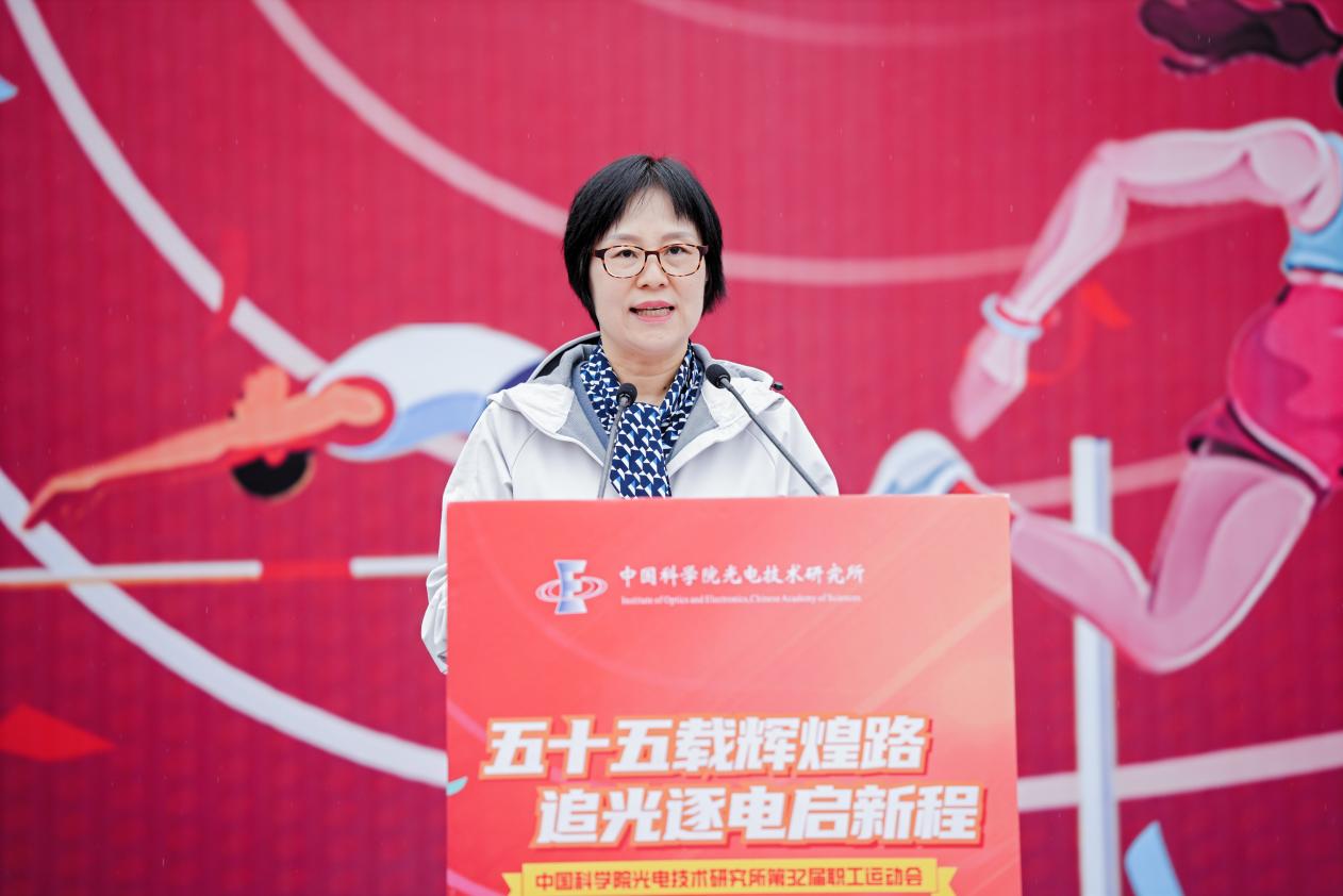光电所纪委书记周谊为运动会致开幕辞。她代表所领导班子向莅临现场的各位领导、嘉宾表示热烈欢迎!向长期以来为光电所发展辛勤付出的全体职工表示衷心感谢!她指出,五十五载春华秋实,光电人始终与祖国同频共振,将个人理想熔铸于国家科技发展的壮阔征程。当前,国家对战略科技力量提出“抢占科技制高点”的时代命题,这既是科技攻关的冲锋号,更是我们实现跨越发展的历史机遇。希望大家通过本次运动会,赛出强健体魄与昂扬向上的精气神,为光电事业再创高峰奠定坚实基础。