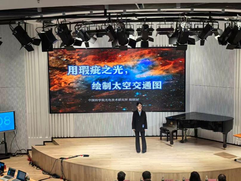 激光事业部的杨晓丽以《用瑕疵之光,绘制太空交通图》为题,讲述了科学家对大气层外空间碎片的监测与管理工作。她详细介绍了通过观测、识别、建档等环节构建空间交通管制数据库的过程,还结合神舟二十号返航遇波折的真实事件,让观众直观认识到太空碎片的严峻威胁,也展现了我国在空间安全保障领域的探索与努力。